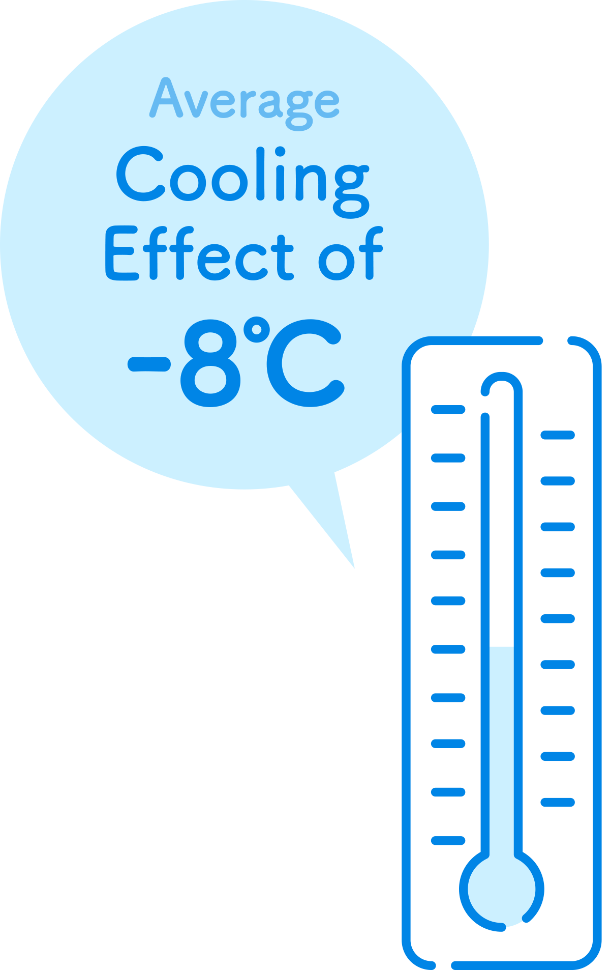- It can cool the surrounding air by approximately 8°C below the ambient temperature. However, the actual effect may vary depending on environmental conditions such as the installation location.