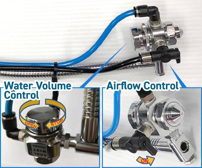 - The mist can be turned ON or OFF by opening or closing the valve (cock).